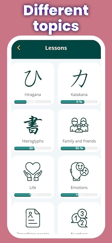 Study Japanese words in the app Japanese for Beginners A1 Level. Studying Japanese has never been so easy and simple!