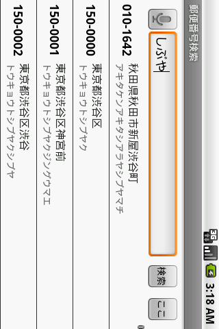 When you want to know a postal code, you can search a part of address in Chinese, hirakana, katakana.