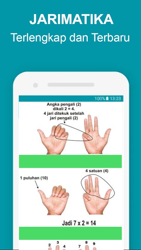 Jarimatika (short for Jari and Mathematics) is a way of counting either the sum, subtraction, division or multiplication of mathematics by using the fingers. With the application of Jarimatika (Finger Mathematics) Complete - Smart and Fast counting is expected to students or teachers can perform math counting operations that is the addition, subtraction, multiplication and sharing use our fingers.