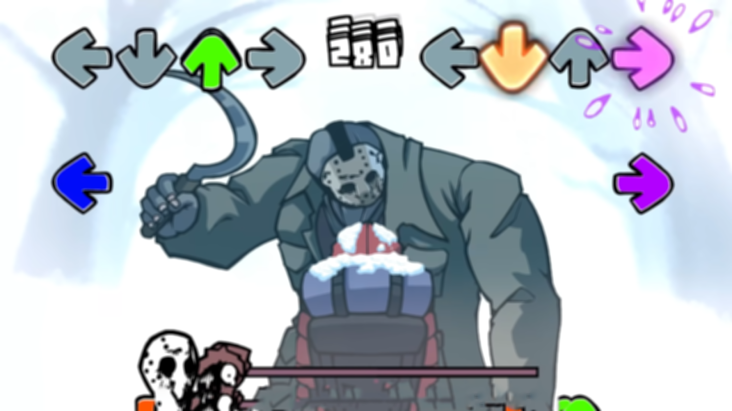 Immerse yourself in the heart-pounding horror crossover you never knew you needed with "Jason Voorhees VS FNF Mod." This Friday Night Funkin' mod takes the classic horror franchise, Friday the 13th, to a whole new level of spine-tingling excitement in version 1.5. Join Boyfriend and Girlfriend as they step into the rap arena to face the legendary slasher, Jason Voorhees.