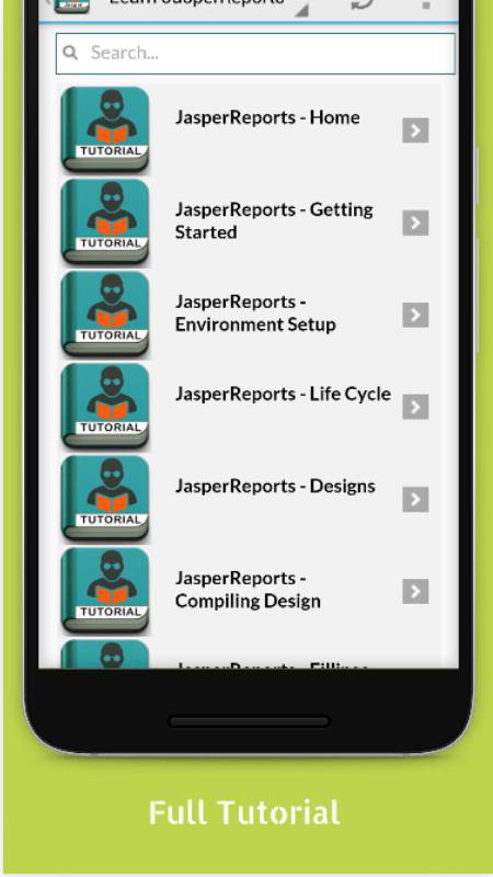 For those of you who want to learn JasperReports and want to find the right tutorial. You should try this app. Inside Learn JasperReports app there is a complete tutorial and guide to learn JasperReports from beginner level. All tutorials are precisely and attractively designed to make it easier for you to learn. All the steps in this tutorial are very easy to learn and follow.