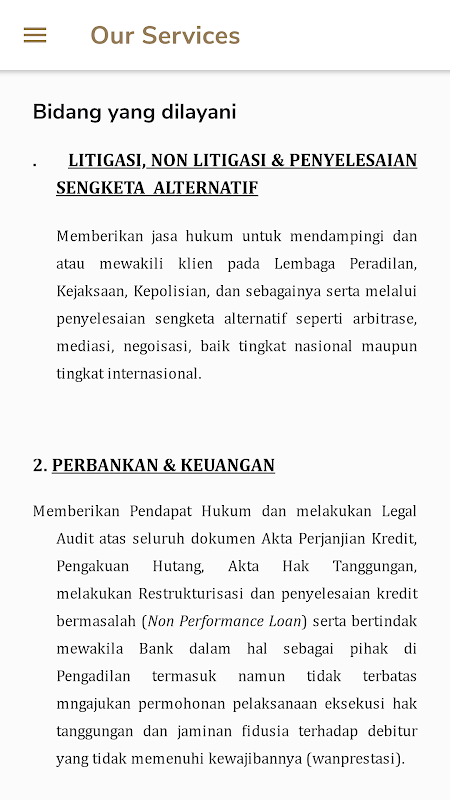 Memberikan solusi yang tepat atas setiap permasalahan hukum yang dihadapi oleh klien secara profesional.