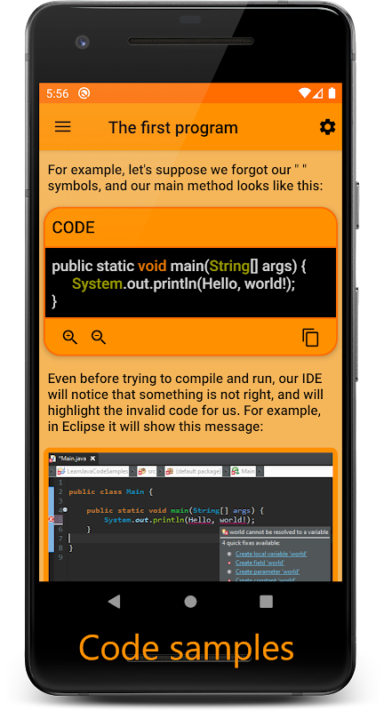 This app is intended for beginners at programming, but it's also suitable for those who already have experience with other languages (C++, C#, Python).