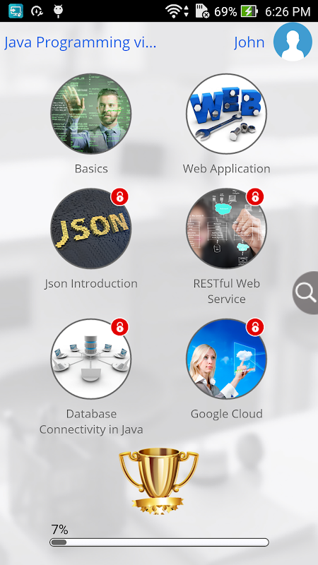 You have limited access to the content provided. For full access to the content, please login and purchase this application. This app provides a quick summary of essential concepts in Java Programming for Apache Tomcat and Google Cloud using Eclipse by following snack sized chapters: