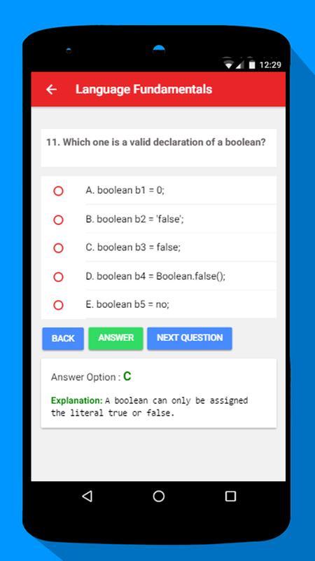 This app is based on different categories of Core Java.This app contains 10 categorized , and 220 java questions with solution.Make test and take result at the same time.