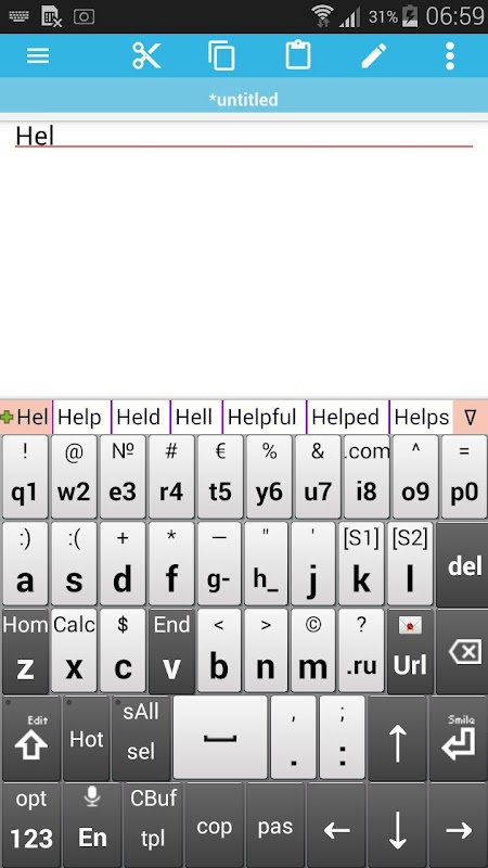 *Holding the 123 (opt) key, you call the main menu of the keyboard. It contains various useful links: Settings, Multi-clipboard, Templates, Calculator, etc. You can also customize menu items to display.