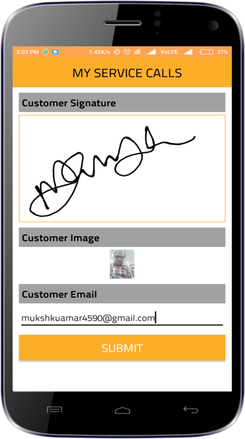 DBMS Service Call On Mobile: Service engineers get service call with customer with machine failure details.