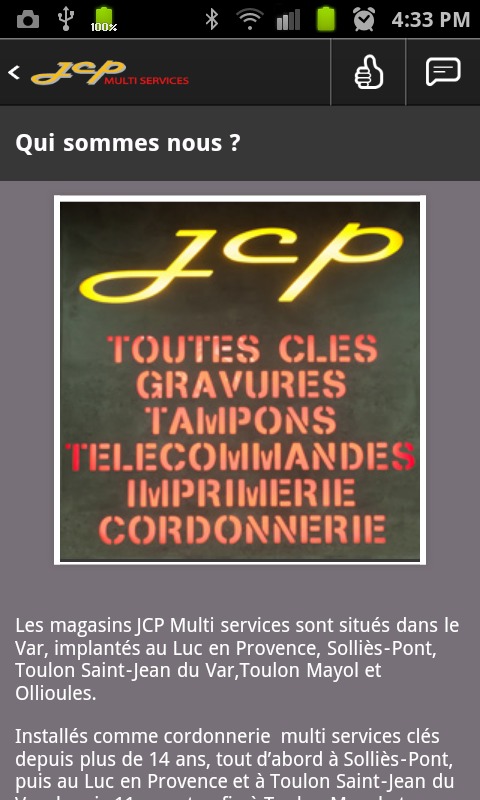 Les magasins JCP Multi services sont situés dans le Var, implantés au Luc en Provence, Solliès-Pont, Toulon Saint-Jean du Var, Toulon Mayol et Ollioules.