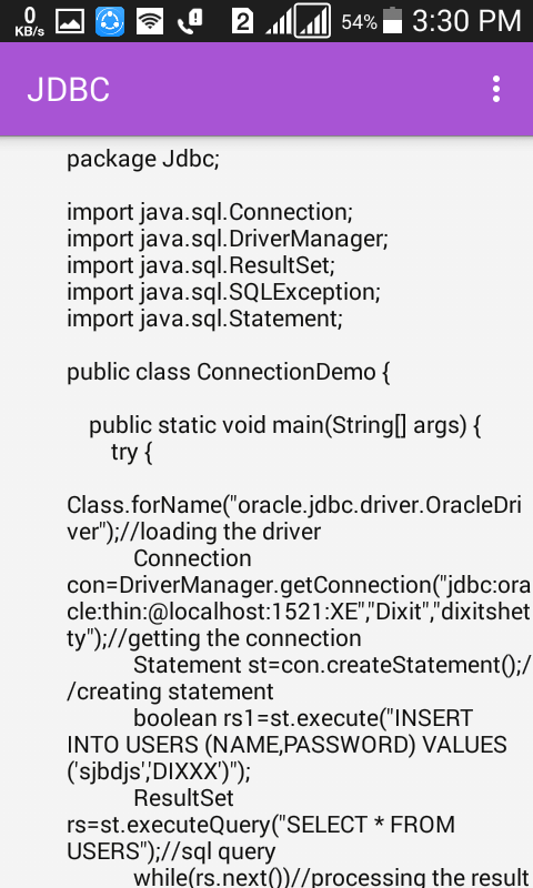 For those who want to learn JDBC, you should try this app.App works offline. All tutorials are precisely and attractively designed to make it easier for you to learn.All the steps in this tutorial are very easy to learn and follow.