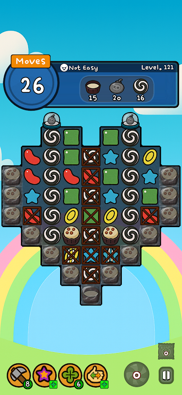 * Complete tons of challenging and fun match-3 levels and unlock new worlds.