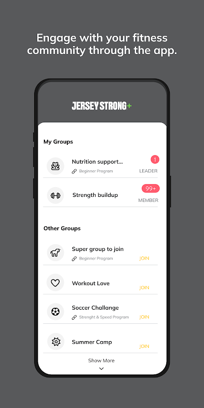 With the Jersey Strong+ App, you can access customized fitness plans, track your workouts and meals, measure your results, and get in great shape -- and even get help from a fitness coach whenever you want it.