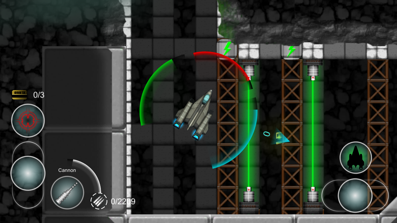 Your goal is to collect all pass cards and get to the objective alive, when you succeed then you get rewarded with some extra energy points which you can spend on upgrading your rocket. A lot of danger waits to interrupt you on your way to the finish.