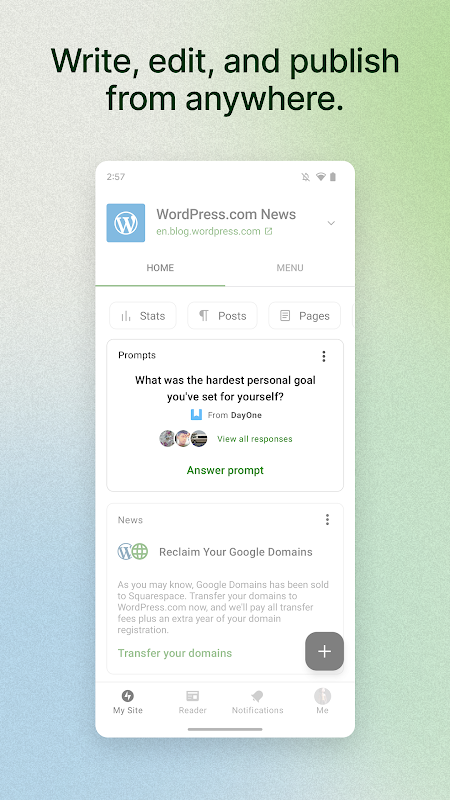Give your big ideas a home on the web. Jetpack for Android is a website builder and a blog maker powered by WordPress. Use it to create your website.