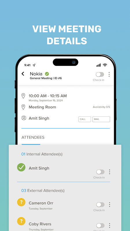 - Check-in attendee to a meeting