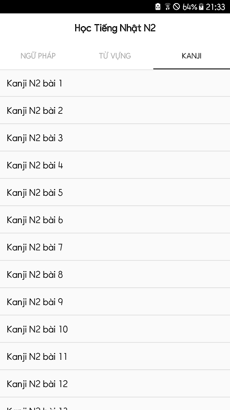 Ứng dụng học ngữ pháp, từ vựng, kanji tiếng nhật cấp độ n2 hay và đầy đủ nhất