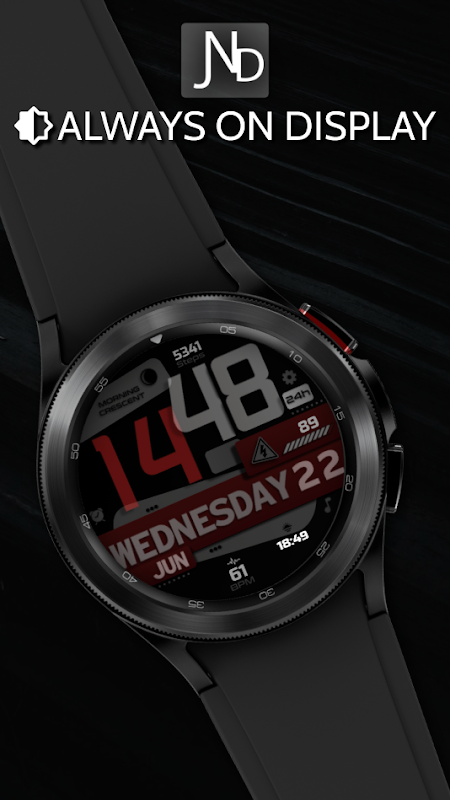 The JND0010 is a Digital watch face for Wear OS from JacoNaudeDesign