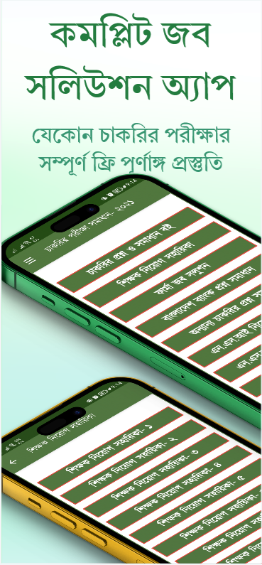 In the Job Solution Book BD 2025 app, you will get previous year question solutions, topic-wise general knowledge, current affairs, Bengali, English, maths and science including suggestions and questions for preparation.