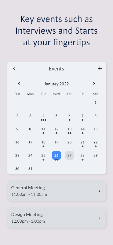 Access your calendar with a sleek, intuitive interface, and manage all your work events, plus any important interviews or start dates you may want to track.