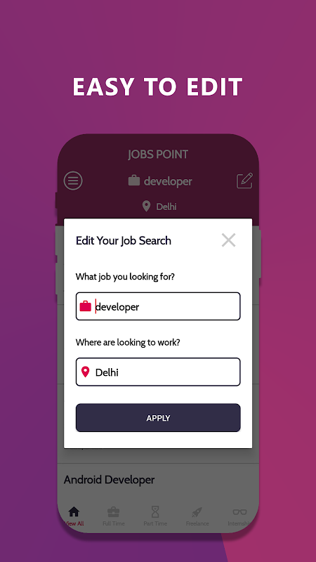 You can select the radius of your job searches, find jobs with specific keywords, filter the results to narrow only job opportunities meeting your criteria. Select what type of job you are looking for: Full-time, Part-time, Contract, Internship, Temporary or any. You can search for a newly advertised job or any age of the job listings.