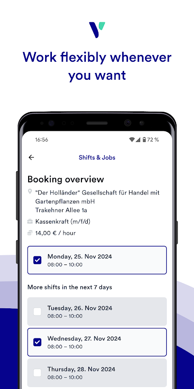 That means: The offer of student jobs in the app, your personal schedule and the corresponding information are always up to date. With jobvalley, you earn money without stress.