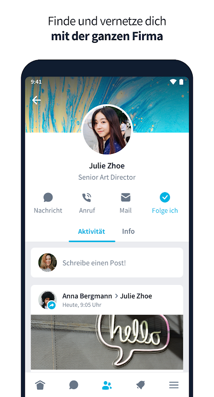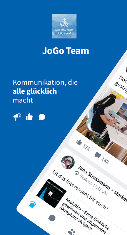 With this app, employees are always informed about all news from their locations and about the medal. In addition, a chat facilitates communication with one another. On JoGo Team, all information from the intranet, such as menus, etc. is also available - according to the motto right in the middle instead of just being there.
