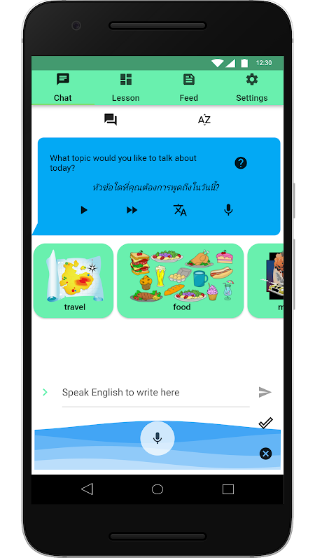 - Listen and repeat conversation with the bot to improve your skill