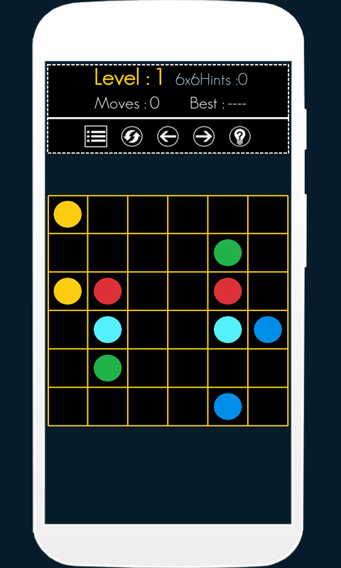 - Each stage level it will count move you have to Join two color dots in less moves which show as Best moves.