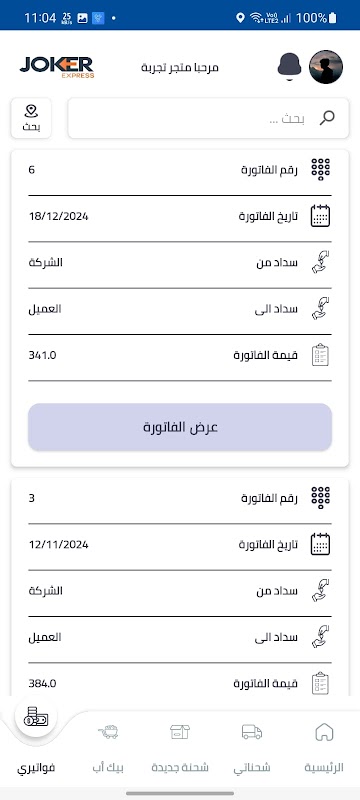 Through the customer interface, through the application, he can add shipments, follow up on his shipments, their status, the shipment itinerary, and follow up on his balances and accounts.