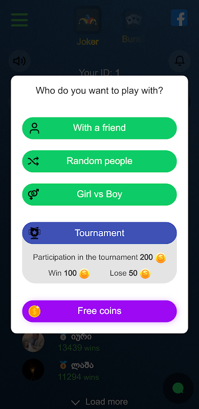Popular games 3 cards bura, 5 cards bura, joker and checkers (damka) online where you can play with friends or other users of the game.