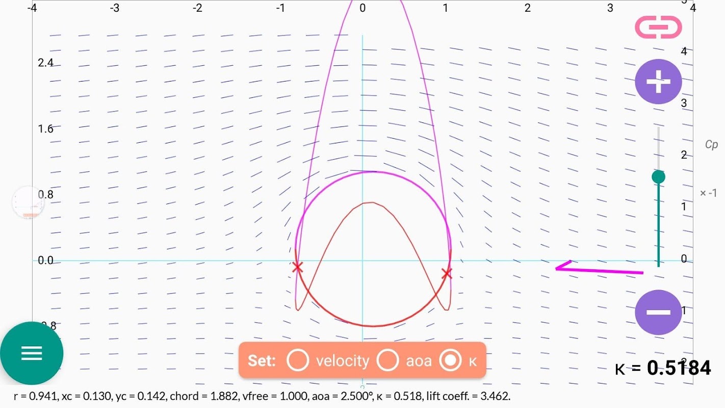 This app is useful for anyone who want to learn the subject of potential flow, conformal mapping, or anyone who want to explore how the change in the airfoil's geometry or the flow parameters affect the velocity field pattern and/or the surface pressure distribution of a body in a potential flow.