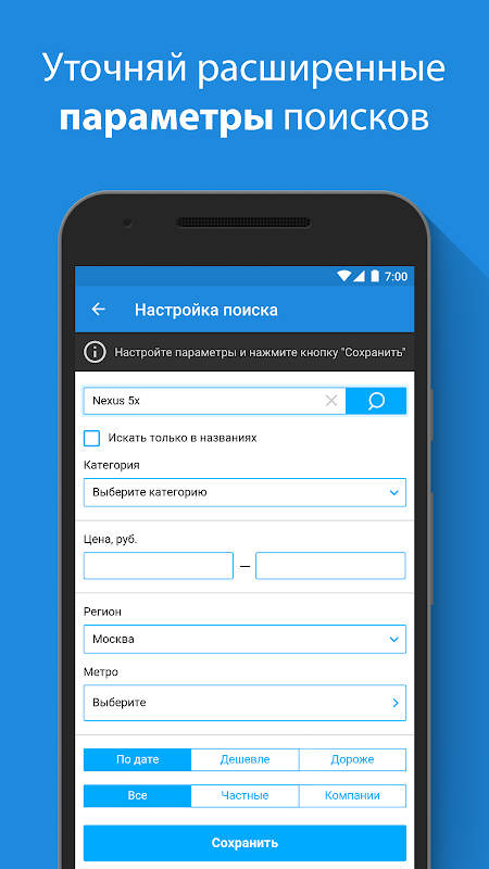 Забудьте о ручном поиске подходящих объявлений на авито и тратах на это большого количества времени. Просто установите приложение, и вы всегда будете знать о последних объявлениях и самых выгодных предложениях, чем бы вы не занимались. Все, что нужно, это настроить подходящие для вас параметры поиска, закрыть приложение и заниматься своими делами. Автоматический поиск сам сделает все за вас в фоновом режиме и даст знать, когда появится новое объявление.