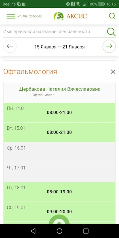このアプリケーションの助けを借りて、ゼレノグラード、モスクワ、モスクワ地域のすべての居住者は、医師との約束をし、Axis医療センターの医師にオンラインで質問することができます。