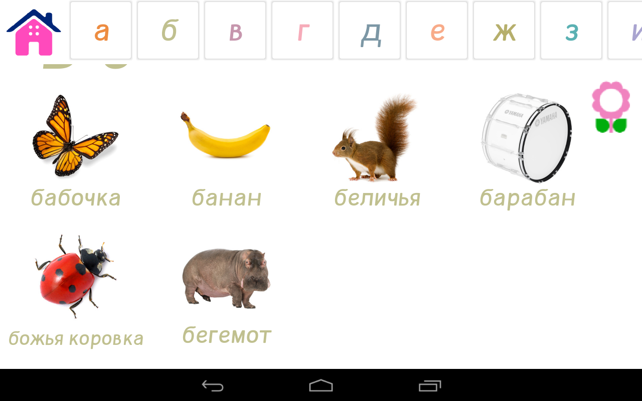 Алфавитный Словарь-Книга это удобное и красочное приложение для маленьких детей, состоящее из всех букв русского алфавита. Оно позволяет им распознавать и называть буквы и звуки, которые они воспроизводят, выбирая интересующие их объекты. Это идеальное решение для обучения начинающих учеников, помогает им запоминать и распознавать алфавит, как большие, так и маленькие буквы, узнавая их в словах и позволяет сделать их обучение более легким, с большим количеством слов в одном алфавите, чем в любых других приложениях.