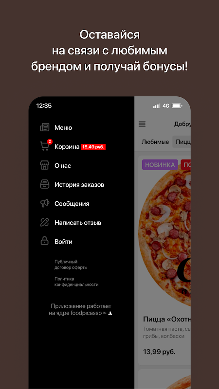 カラフルな写真付きのアイテムを表示し、数回クリックするだけで注文し、新しいオファーに関する通知を受け取ります。