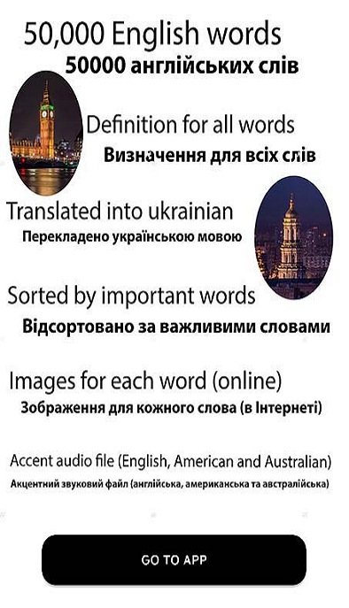 СЛОВНИК з англійської на українську та з української на англійську з малюнками
