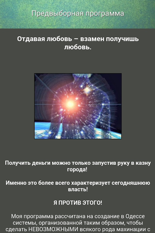 - предвыборную программу кандидата в мэры города Одессы Андрея Манило;