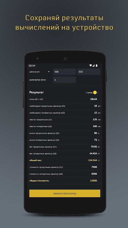 - Теперь можно рассчитать стоимость сетки указав цену арматуры.