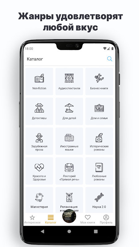 文学愛好家のための私たちのアプリケーションでは、国内外の作家による何千ものオーディオブックやラジオ劇を見つけることができます。サイエンスフィクションとスリラー、神秘主義と冒険、探偵小説や古典など、あらゆるジャンルのオーディオブックがあります。子供向けのオーディオパフォーマンスとおとぎ話、夜の子供向けの本、オーディオのおとぎ話と面白い話の壮大なコレクションを集めました-おとぎ話と冒険の世界への招待状。自己啓発と自己改善に関する興味深い本、外国語を勉強するための資料、ビジネス文学がたくさんあります。