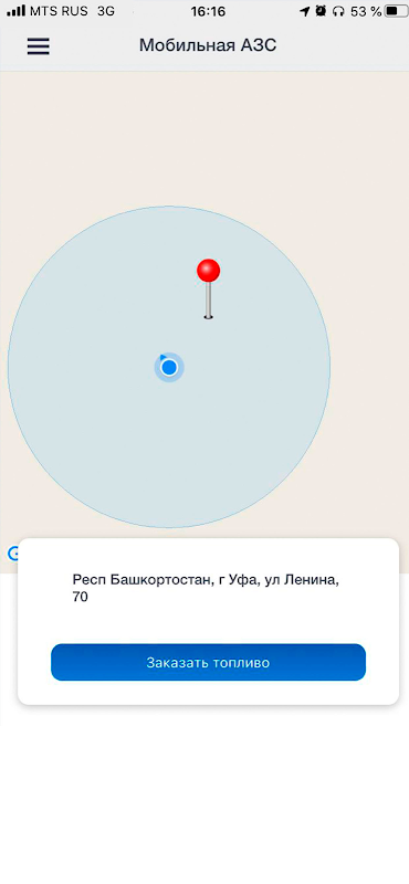 Приложение позволяет заказывать заправку газгольдера или автомобиля на газомоторном топливе