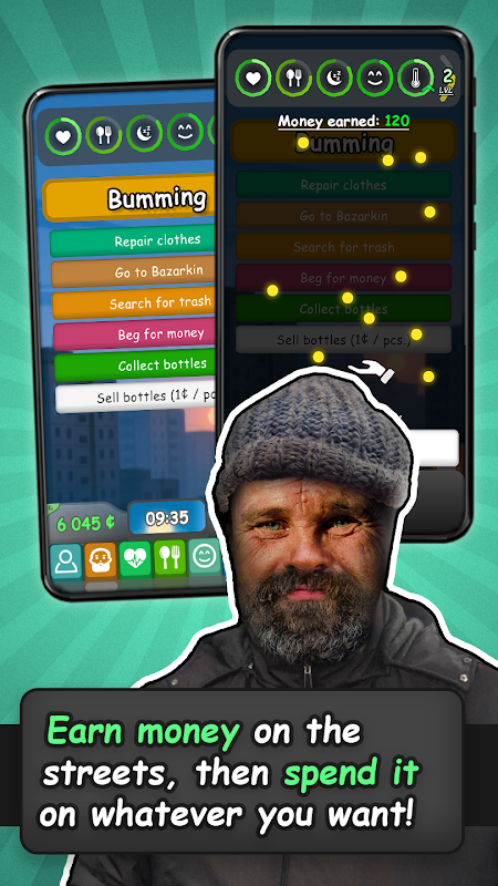 ✔ ゴミ箱でアイテムを探し、物乞いをし、ボトルを集めて売りましょう。
