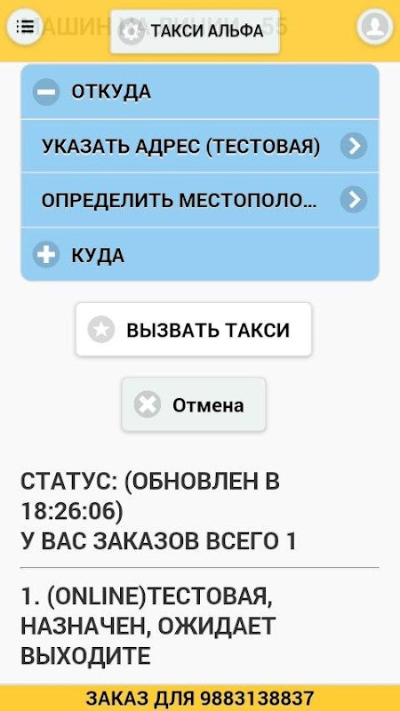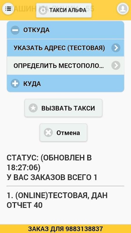 Данное приложение несет основной функционал для вызова такси и отображения состояния заказа, который клиент пожелал сделать в службе такси.