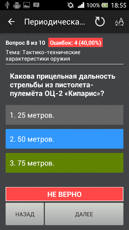 - режим тестирования - "Свой тест", который позволяет создать собственный тест, используя выбранные темы