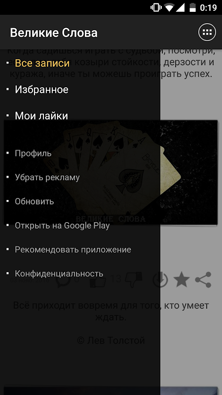 Понравившиеся записи можно комментировать и оценивать. Все понравившиеся картинки можно сохранять в галерее устройства в папке приложения. Ты можешь делиться записями с друзьями через социальные сети, а так же другие установленные на устройстве приложения. Ну и конечно, ты можешь оставлять лайки и сохранять записи в избранное.
