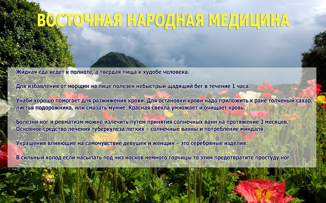 Человечество признало преимущества целебных даров природы подготовленных по рецептам народной медицины в сравнении с химическими лекарственными препаратами. Ее советы и рекомендации все больше приобретают массовый характер.