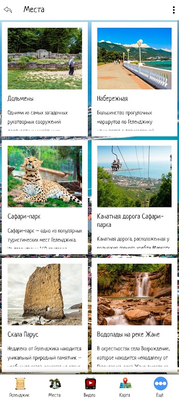 このアプリケーションでは、ゲレンジークとの最初の知り合いを作り、観光スポット、ビデオレビュー、レビューを見て旅行する場所を選択できます。このアプリケーションには、選択した都市でサービスを提供しているツアー代理店やホテルに関する情報も含まれています。