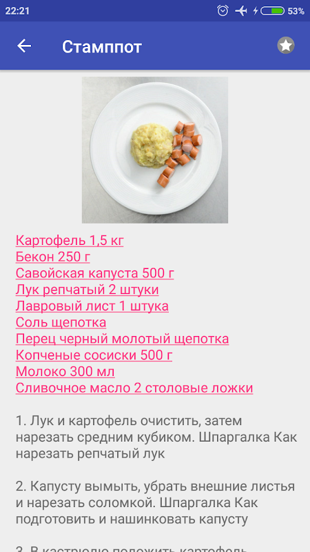 - Список необходимых для приготовления блюда ингредиентов, их количество и пропорции;
