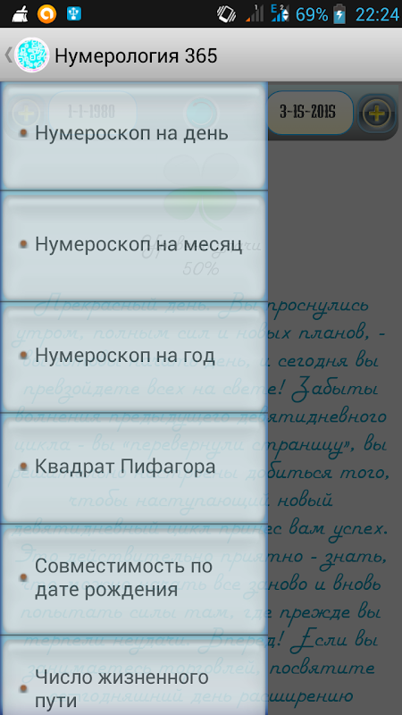 С помощью этого приложения вы узнаете что вас ждет сегодня, завтра, каждый день.Простой нумерологический анализ поможет разобраться вам в себе и окружающих. Гороскоп позволит всегда быть в курсе насколько удачлив будет день, каким будет месяц либо год.Проверьте себя и вашего партнера на совместимость.Добавьте виджет и всегда будьте в курсе уровня вашей удачи.