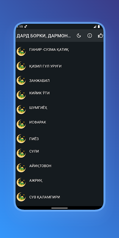 Ilova: Dardlarning davolari halol narsalarga zhoylangandir. Shu sababli kitobda dhikr qilingan nozhoiiz narsalar chech boshka chora kolmaganda tabibi khoziq ruhsati bilangina llanishi mumkin.