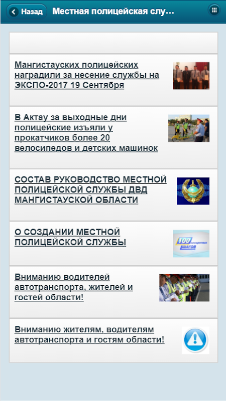 Мобильное приложение Департамента внутренних дел Мангистауской области Министерства внутренних дел Республики Казахстан,