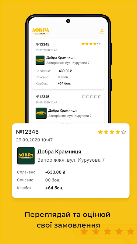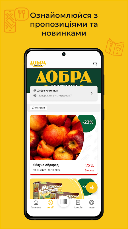 Dobra Kramnytsia アプリケーションをダウンロードすると、独自のロイヤルティ プログラムの一員となります。